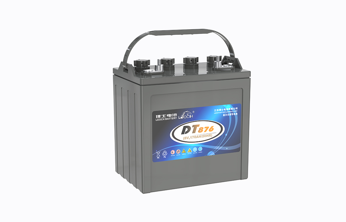 DT系列高尔夫球车电池为富液式铅酸蓄电池。极板设计为平板结构及电解液保持富液状态。特殊的铅膏配方提高深循环性能,高导电性端子有利于电池大电流放电性能。